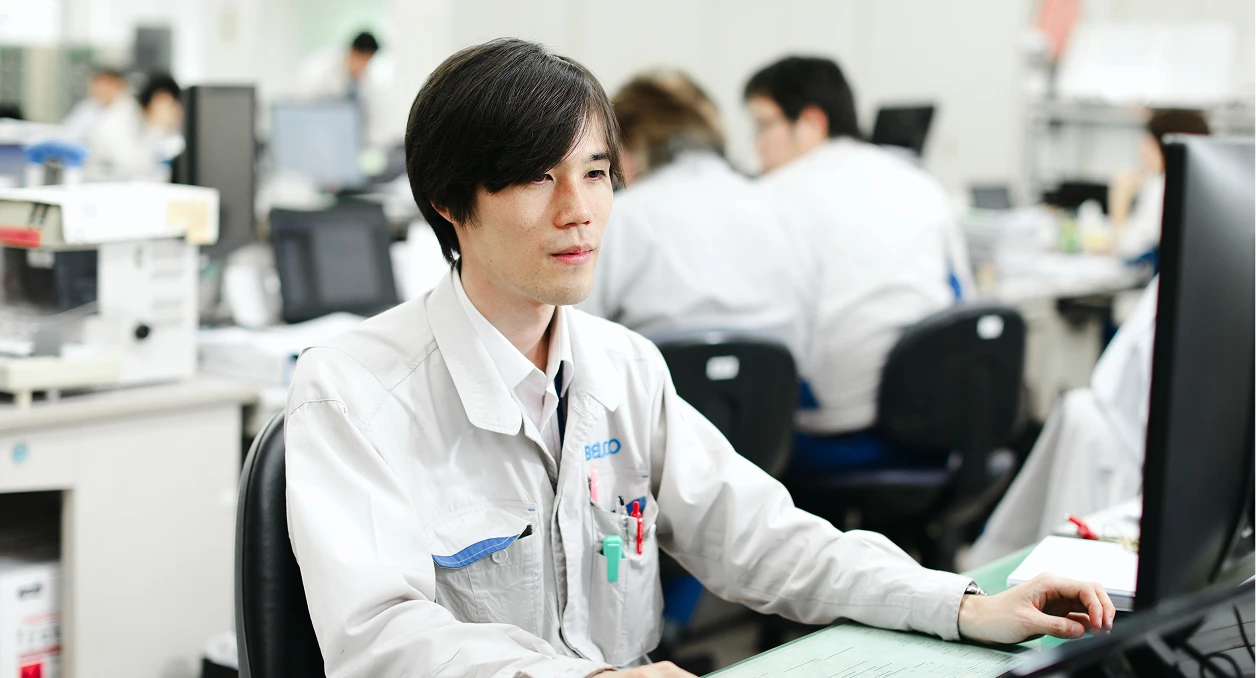 学生の頃から、モノづくりの現場を動かすシステムを自分で設計して立ち上げてみたい、独学で身に付けたプログラミングスキルを活かしたいと思っていました。入社後は、工場の生産ラインの制御機器システムを手掛けています。お客様からさまざまな要望や期待を受け、設計から製作、ちゃんと動くかを確かめる試運転まで、現場に立ちながら技術を磨いてきました。