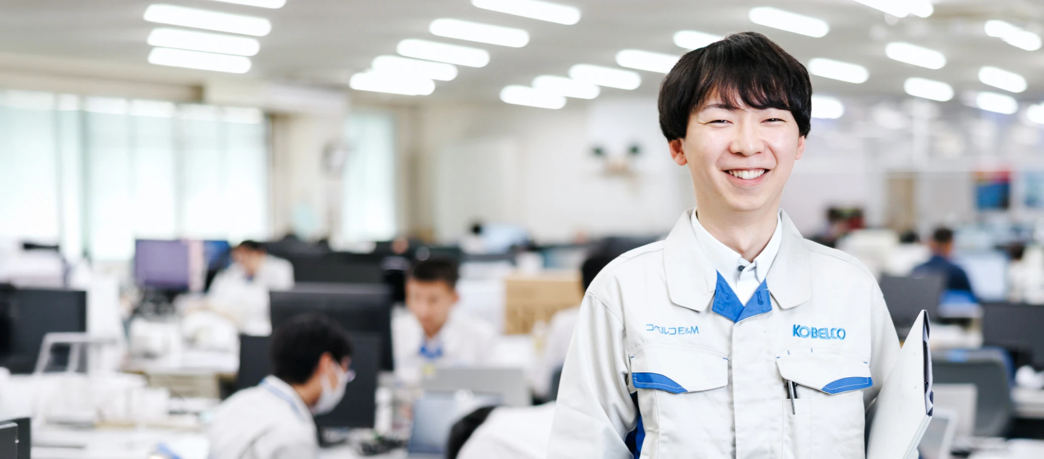 当社の強みは、設計からメンテナンスまで一貫して担うトータルエンジニアリングです。エンジニアとして、お客様の課題を捉え、解決のために一からシステムを形にできることに強いやりがいを感じています。業務の幅が広い分学ぶことは多いのですが、コベルコE&Mは研修体制の手厚さが魅力ですし、早期成長にも繋がります。入社してから最長で4年ほど先輩社員(ブラザー)がつくので、悩みごとがあれば迷わず質問できることが心強かったですね。