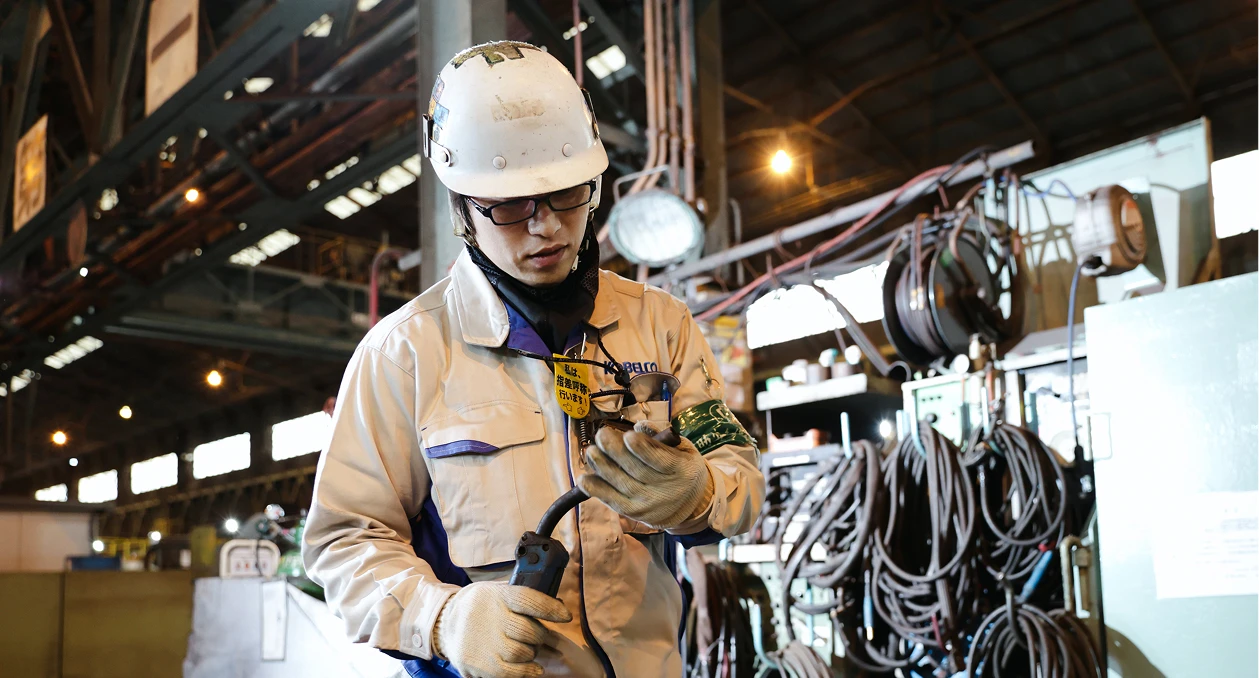 入社して以来、鉄工の溶接・溶断技術を追求し続けています。国家資格よりも審査範囲が広くて厳しい、社内の「技術技能競技大会」にも参加し、溶接や鉄工・仕上・組立など計4部門で賞を受賞したことは、自信に繋がりました。入社4年目に初めてお客様に「すごくきれいな溶接ですね」と褒められたときは、本当にうれしかったですね。今は育成に関わるT/E(テクニシャンエキスパート)として、すべての後輩にも、ぜひそんな瞬間を味わってほしいと思っています。