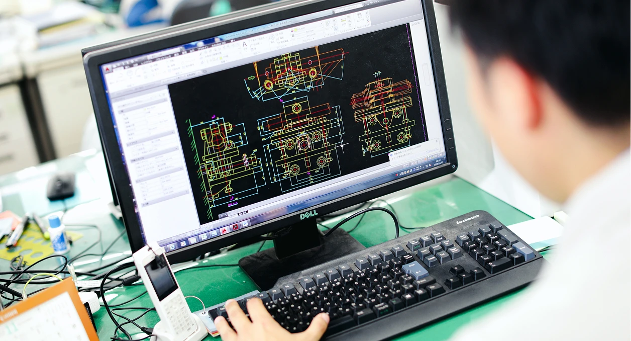 機械設計の業務をしていると、私の仕事は「機械のデザイナーであり、マネージャーでもある」のだと感じます。具体的にはデザイナーとしてお客様の要望をお聞きし、どうすれば実現できるかの構想を立てます。そして、構想から計画図を描き、使いやすさも成り立つ構造に煮詰めていきます。同時に、マネージャーとして関係者との調整や納期、コスト、製作、施工など、モノづくりのフローがうまく流れるよう管理もします。デザイナーとマネージャーの立場を両立することで良いものができ上がると考えています。